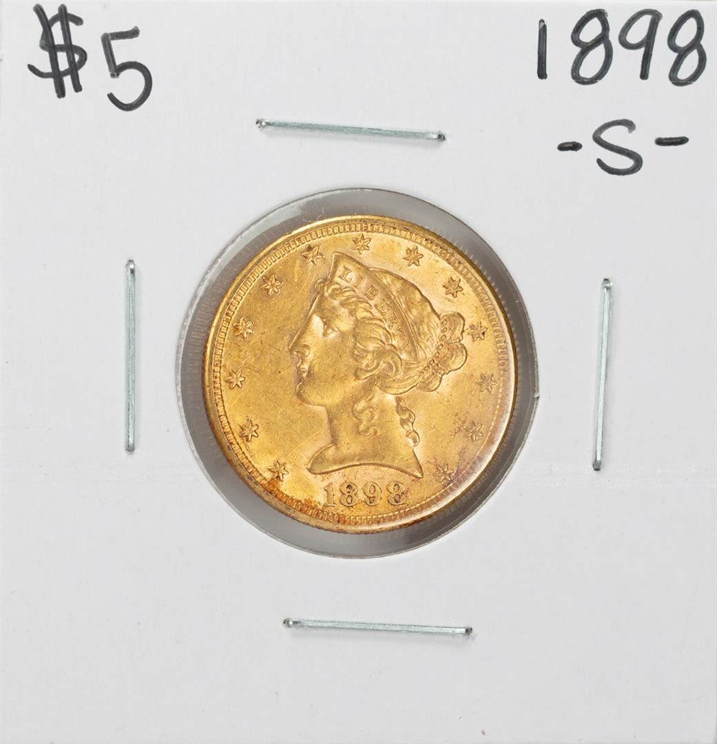 One 1898-S $5 Liberty Head Half Eagle Gold Coin.