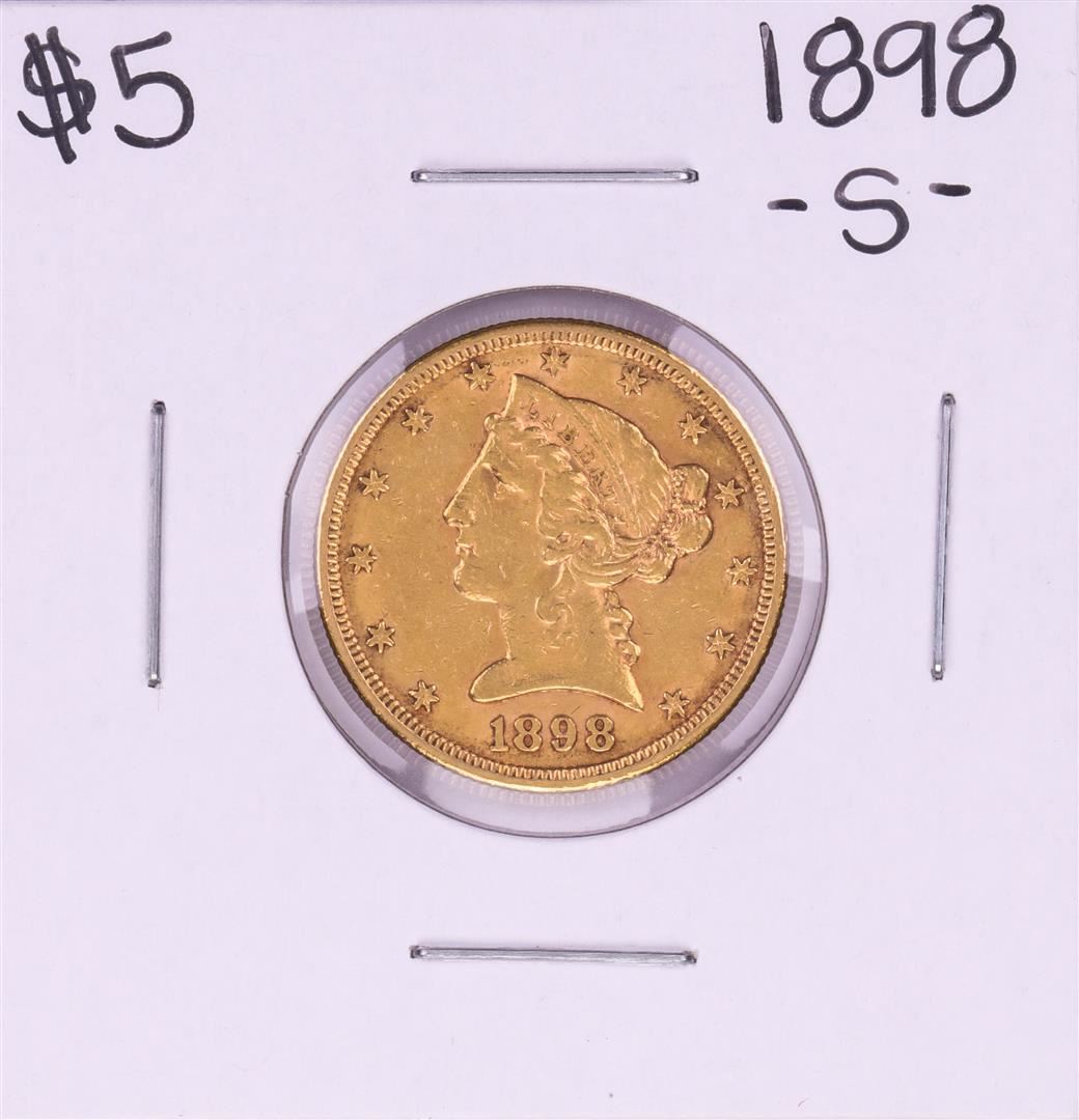 One 1898-S $5 Liberty Head Half Eagle Gold Coin.