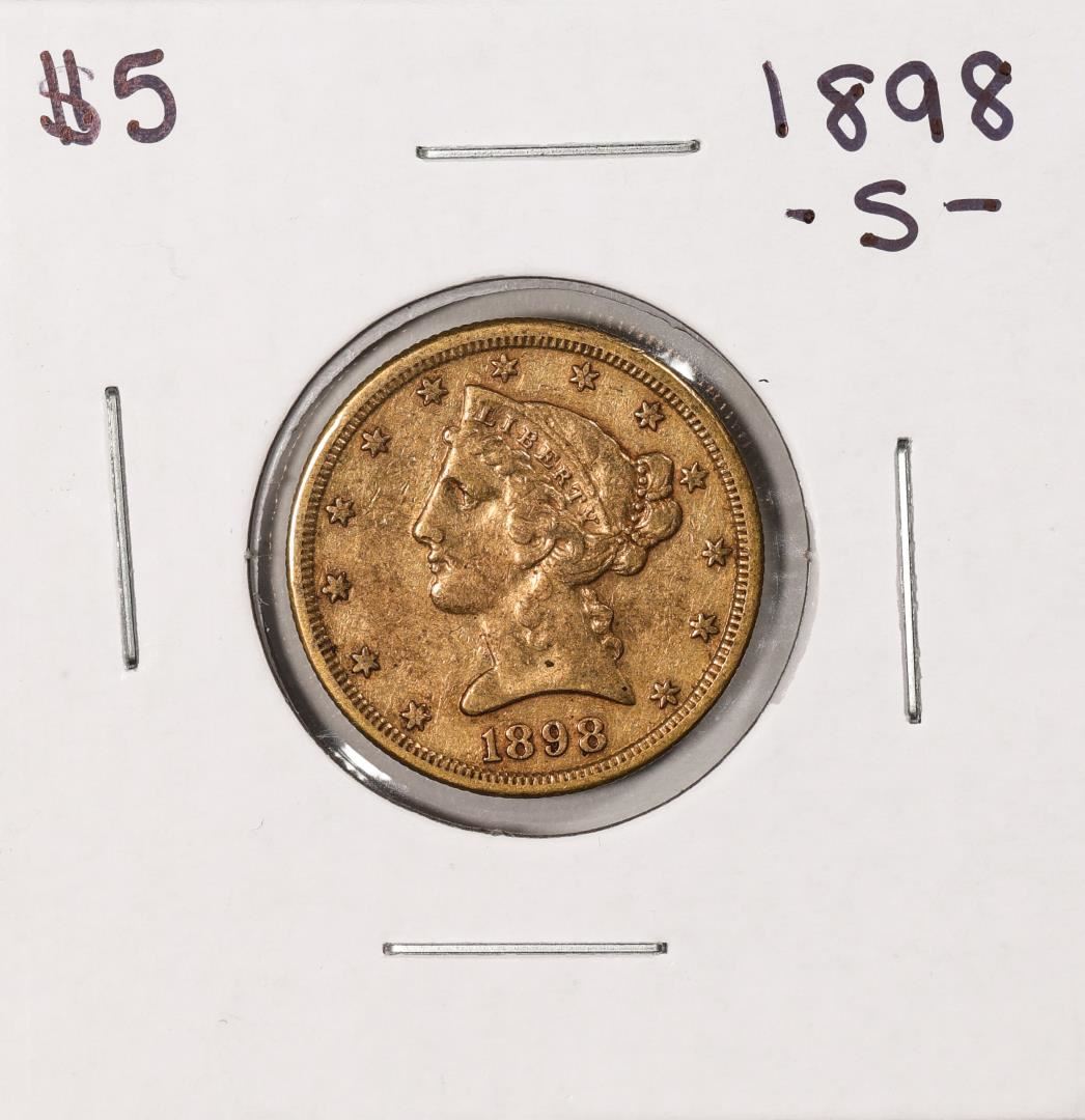 One 1898-S $5 Liberty Head Half Eagle Gold Coin.