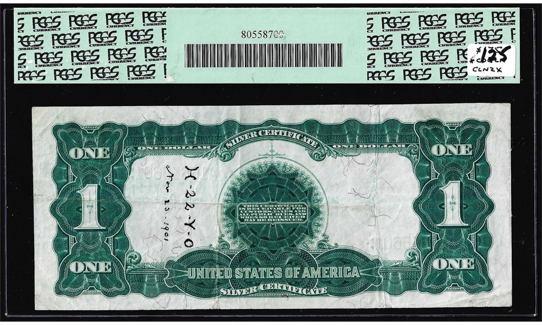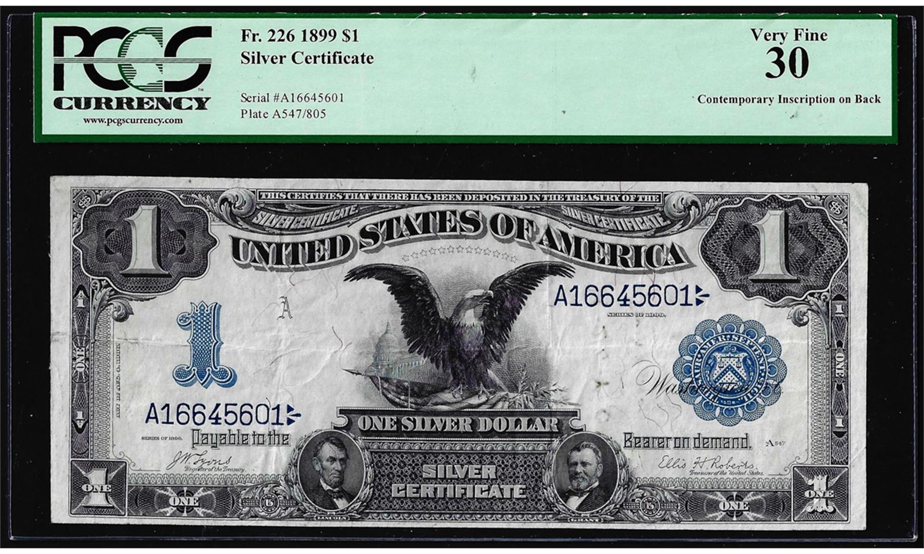 1899 $1 Black Eagle Silver Certificate Note Fr.226 PCGS Very Fine 30 Inscription on Back