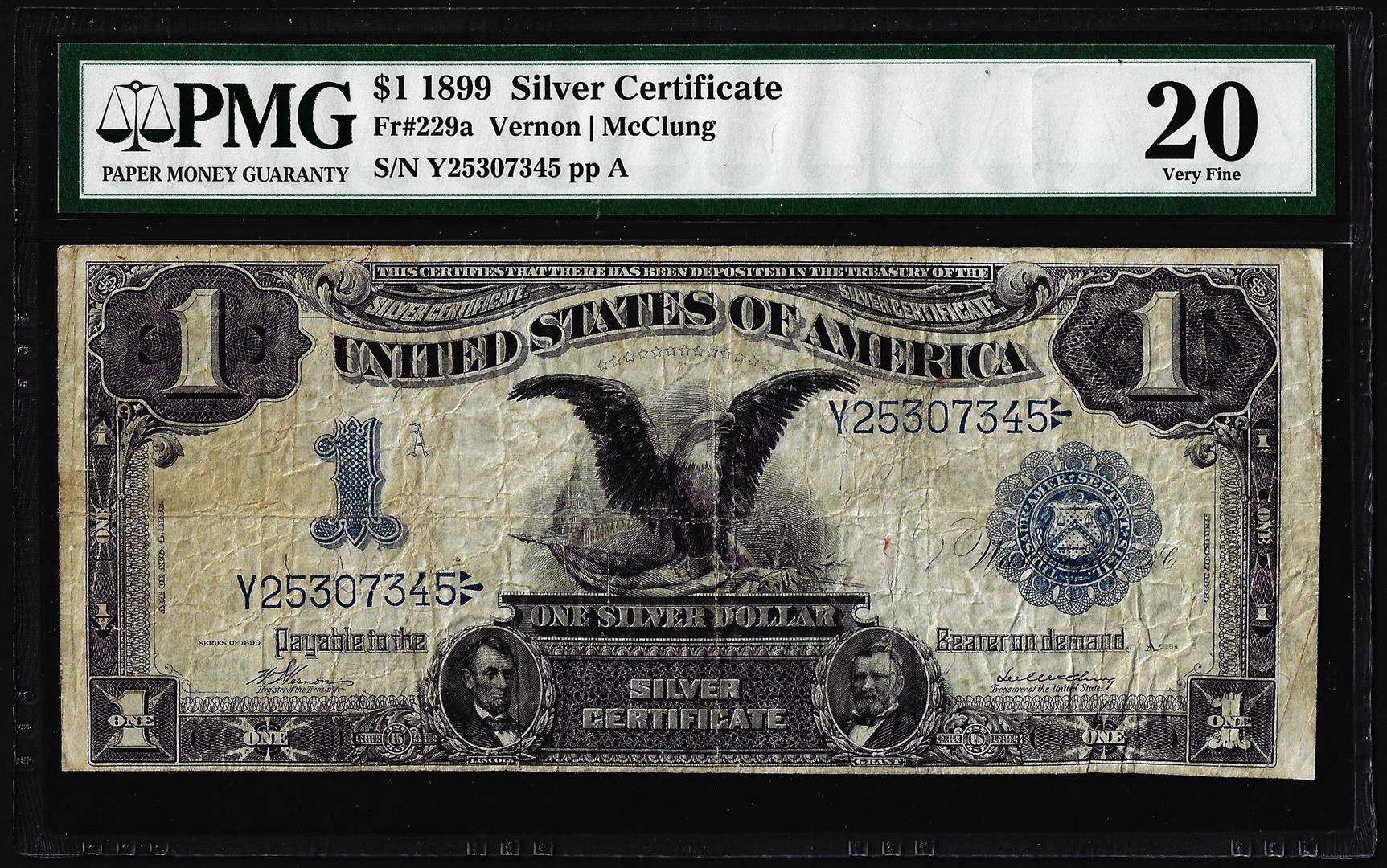 One 1899 $1 Black Eagle Silver Certificate Note Fr.229a PMG Very Fine 20. PMG Certified.
