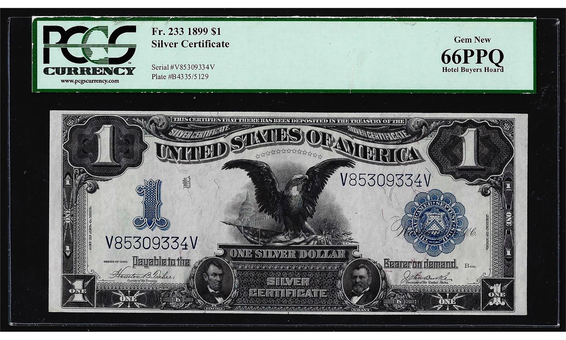 One 1899 $1 Black Eagle Silver Certificate Note Fr.233 PCGS Gem New 66PPQ. PCGS Graded.