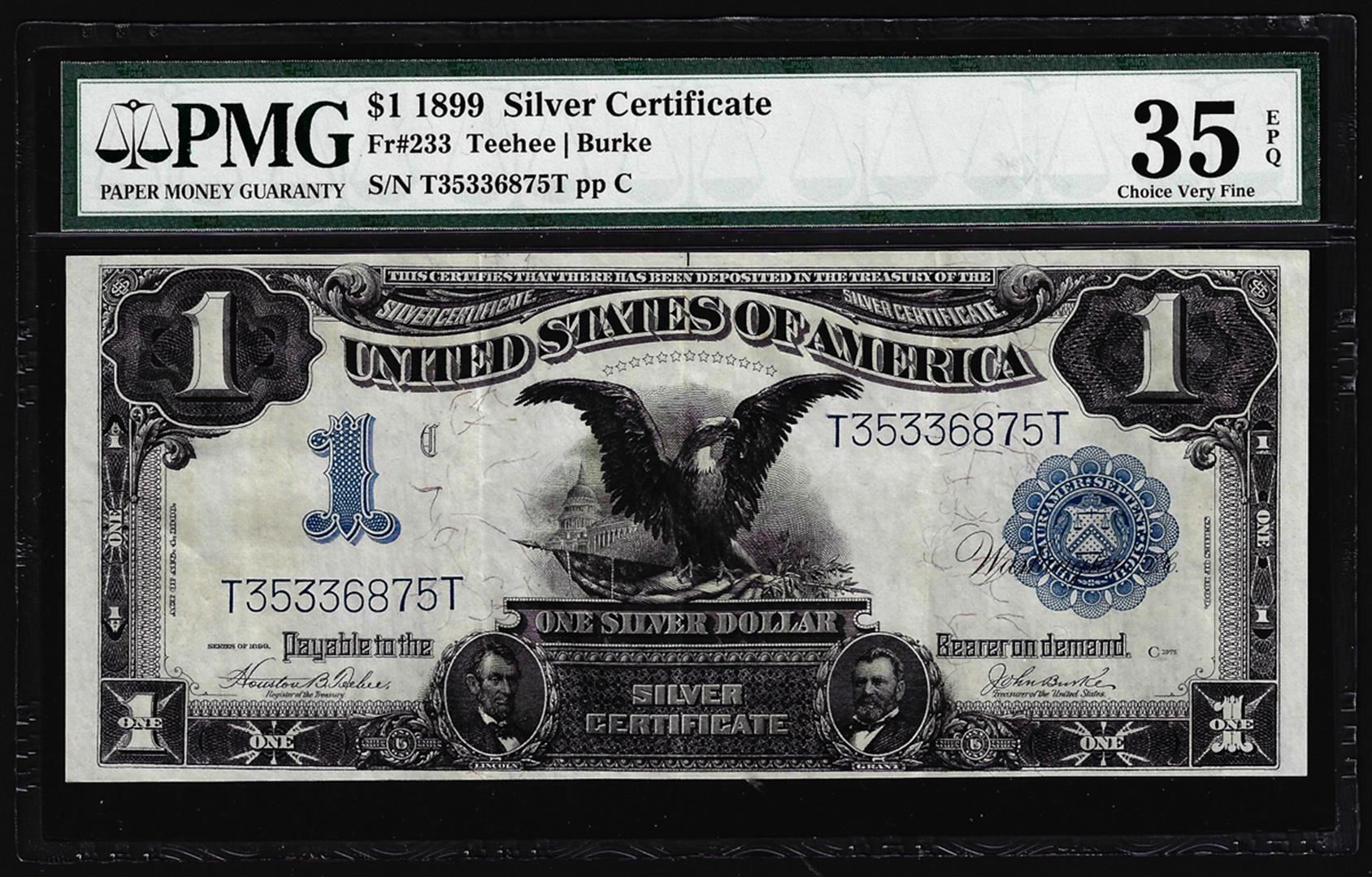 One 1899 $1 Black Eagle Silver Certificate Note Fr.233 PMG Choice Very Fine 35EPQ. PMG Certified.