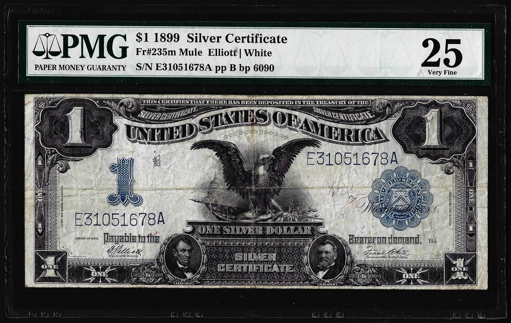 1899 $1 Black Eagle Silver Certificate Note Fr.235m PMG Very Fine 25