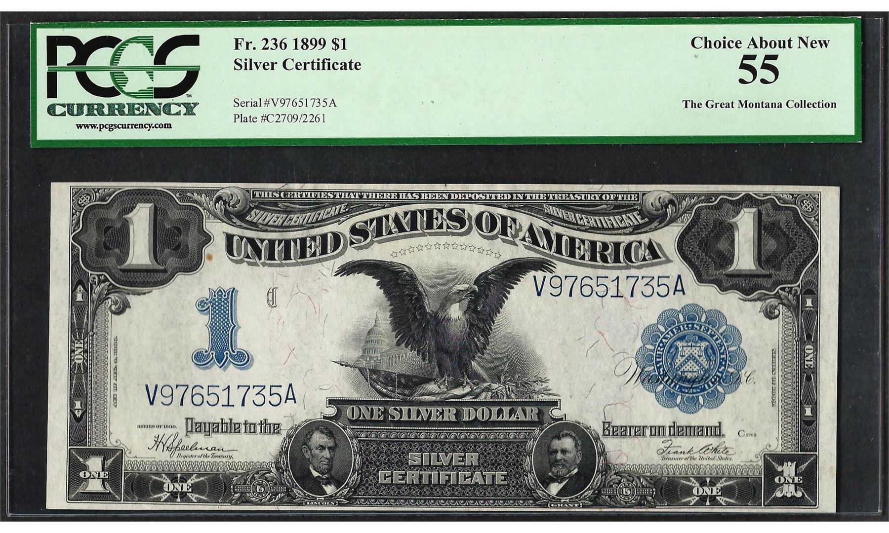 One 1899 $1 Black Eagle Silver Certificate Note Fr.236 PCGS Choice About New 55. PCGS Graded.