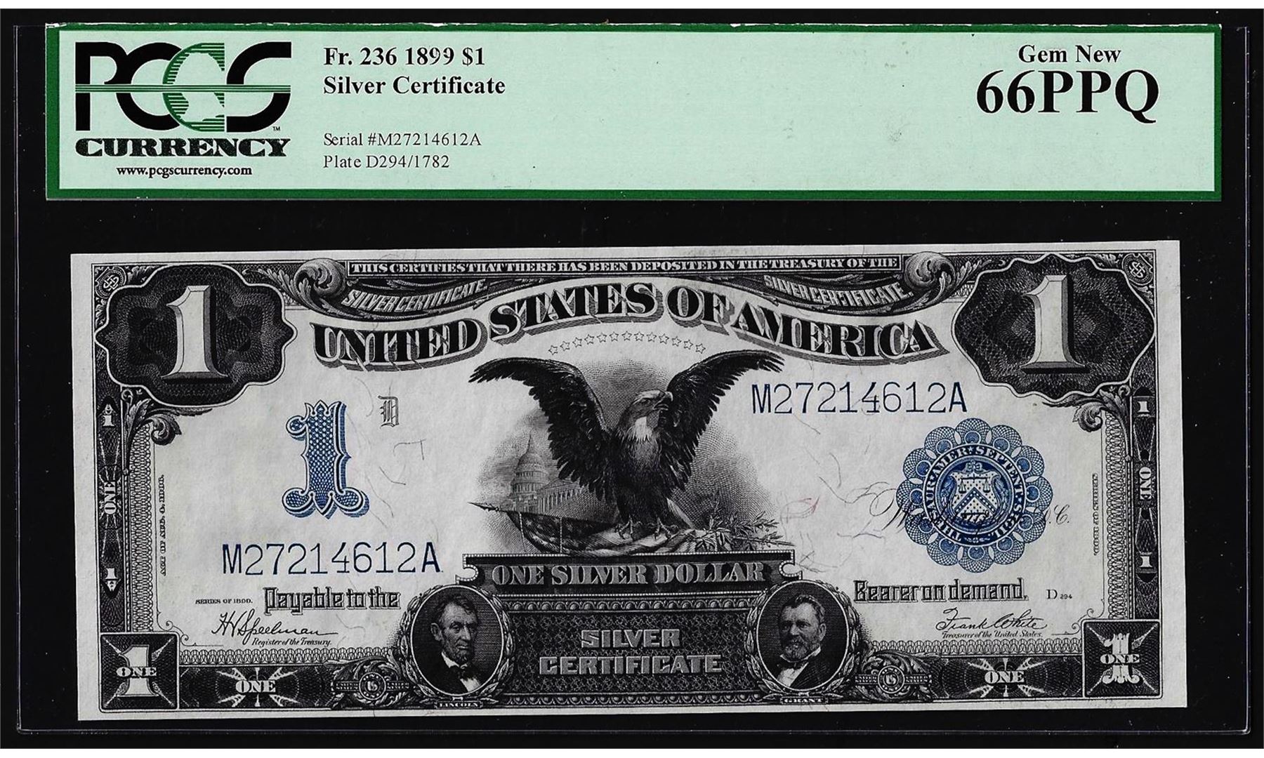 One 1899 $1 Black Eagle Silver Certificate Note Fr.236 PCGS Gem New 66PPQ. PCGS Graded.