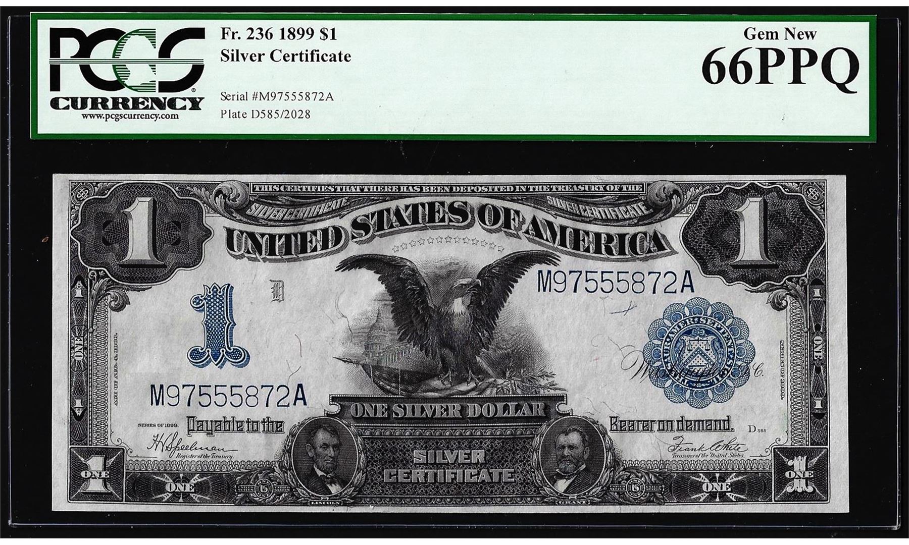 One 1899 $1 Black Eagle Silver Certificate Note Fr.236 PCGS Gem New 66PPQ. PCGS Graded.