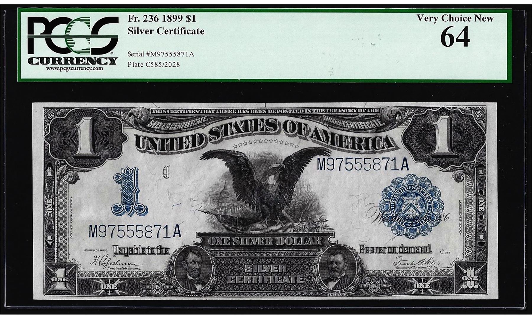 One 1899 $1 Black Eagle Silver Certificate Note Fr.236 PCGS Very Choice New 64. PCGS Graded.