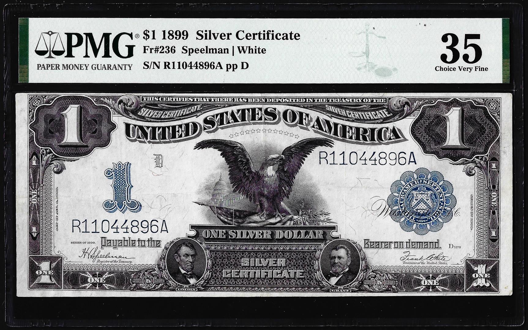 One 1899 $1 Black Eagle Silver Certificate Note Fr.236 PMG Choice Very Fine 35. PMG Certified.