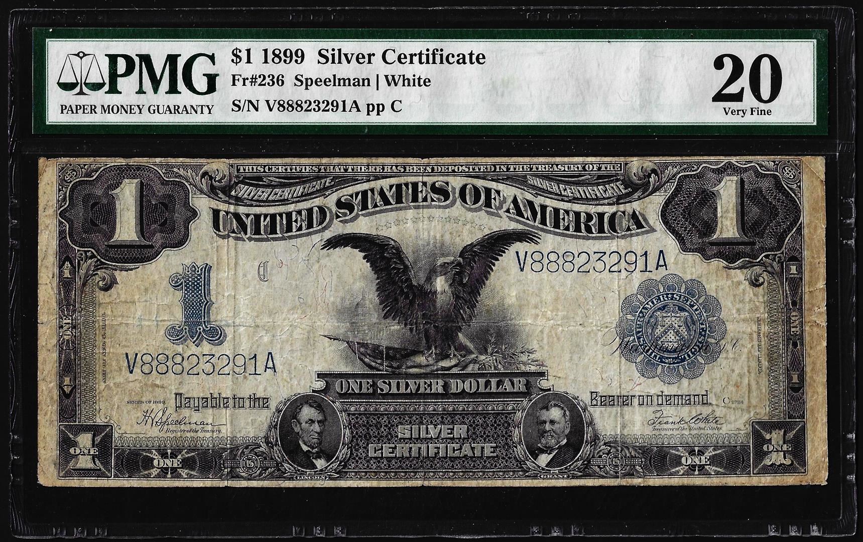 One 1899 $1 Black Eagle Silver Certificate Note Fr.236 PMG Very Fine 20. PMG Certified.