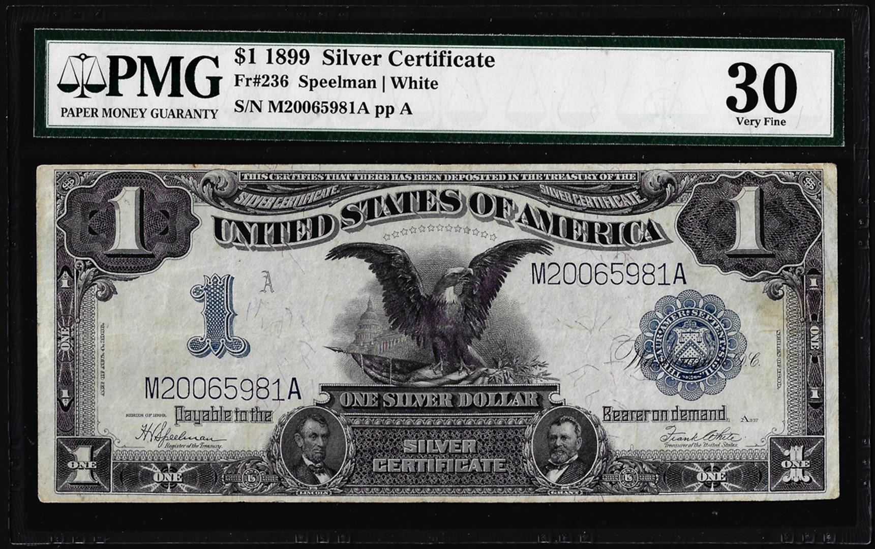 One 1899 $1 Black Eagle Silver Certificate Note Fr.236 PMG Very Fine 30. PMG Certified.