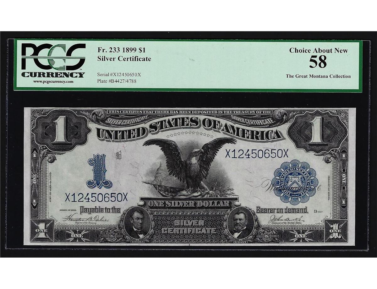 One 1899 $1 Black Eagle Silver Certificate Note PCGS Choice About New 58. PCGS Graded.