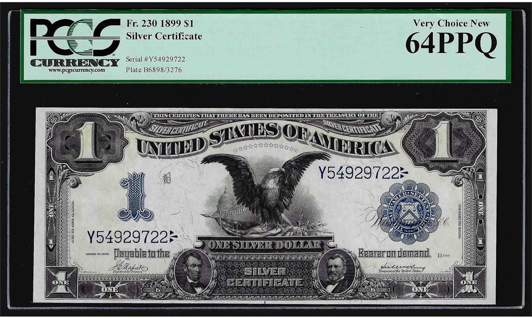 One 1899 $1 Black Eagle Silver Certificate Note PCGS Very Choice New 64PPQ. PCGS Graded.