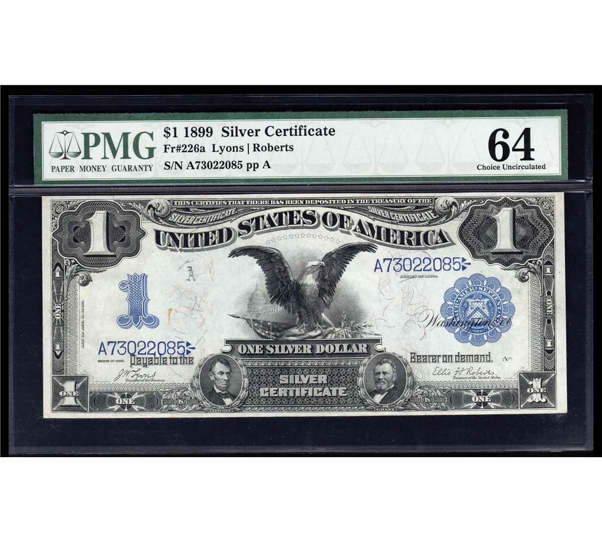 One 1899 $1 Black Eagle Silver Certificate Note PMG 64 Choice Uncirculated. PMG Certified.