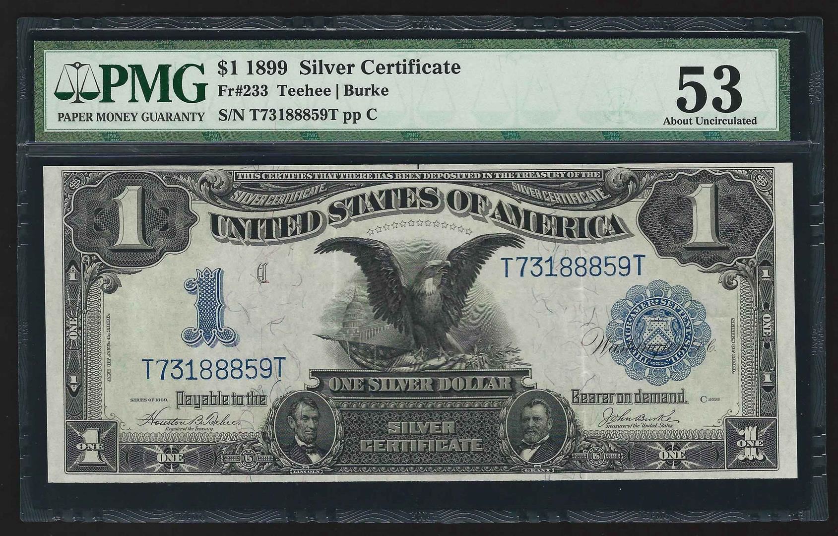 One 1899 $1 Black Eagle Silver Certificate Note PMG About New 53. PMG Certified.