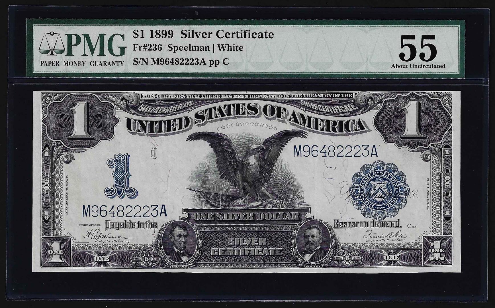 1899 $1 Black Eagle Silver Certificate Note PMG About Uncirculated 55