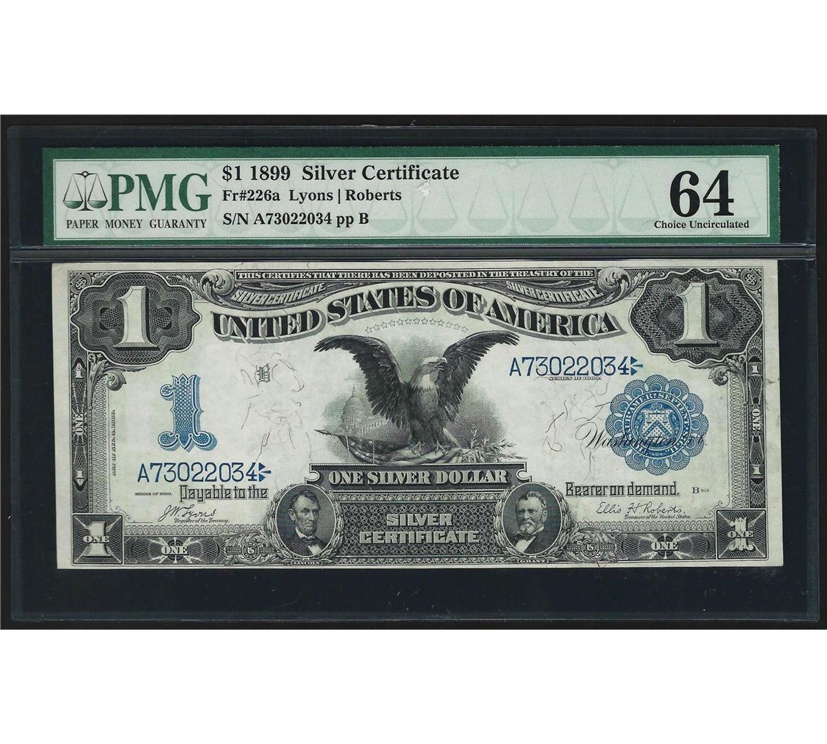 One 1899 $1 Black Eagle Silver Certificate Note PMG CU64. PMG Certified.