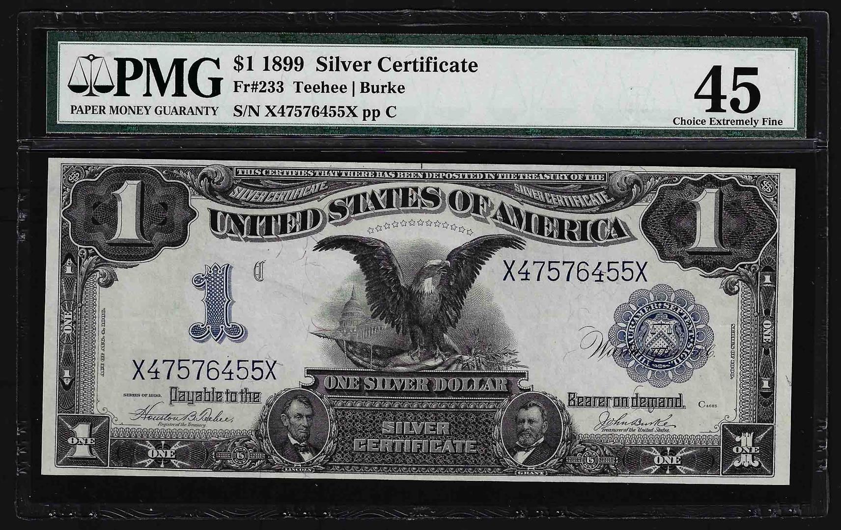 One 1899 $1 Black Eagle Silver Certificate Note PMG Choice XF45. PMG Certified.