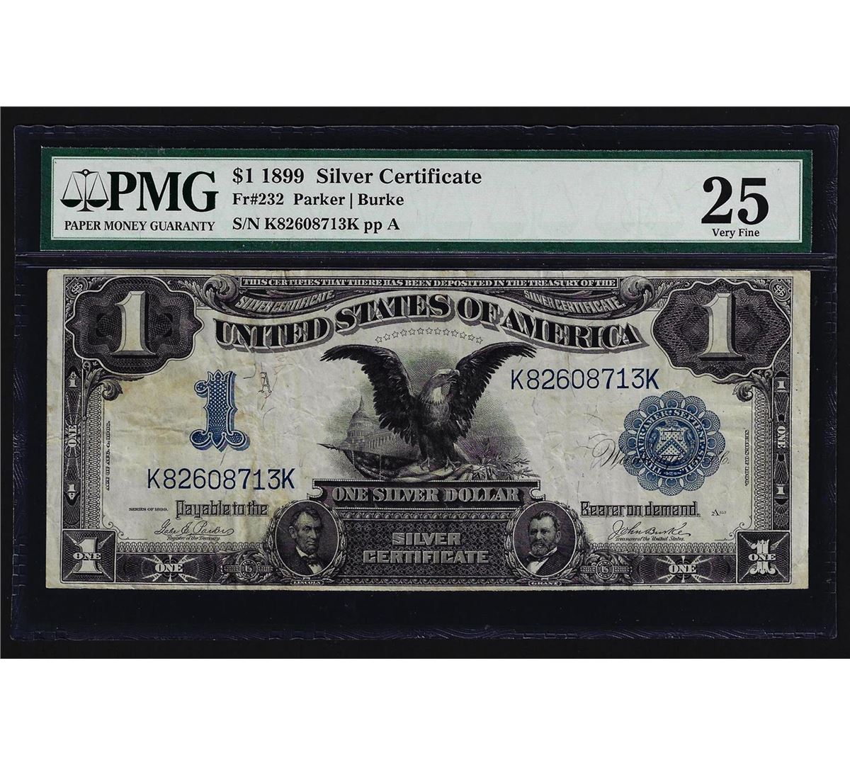 One 1899 $1 Black Eagle Silver Certificate Note PMG VF25. PMG Certified.