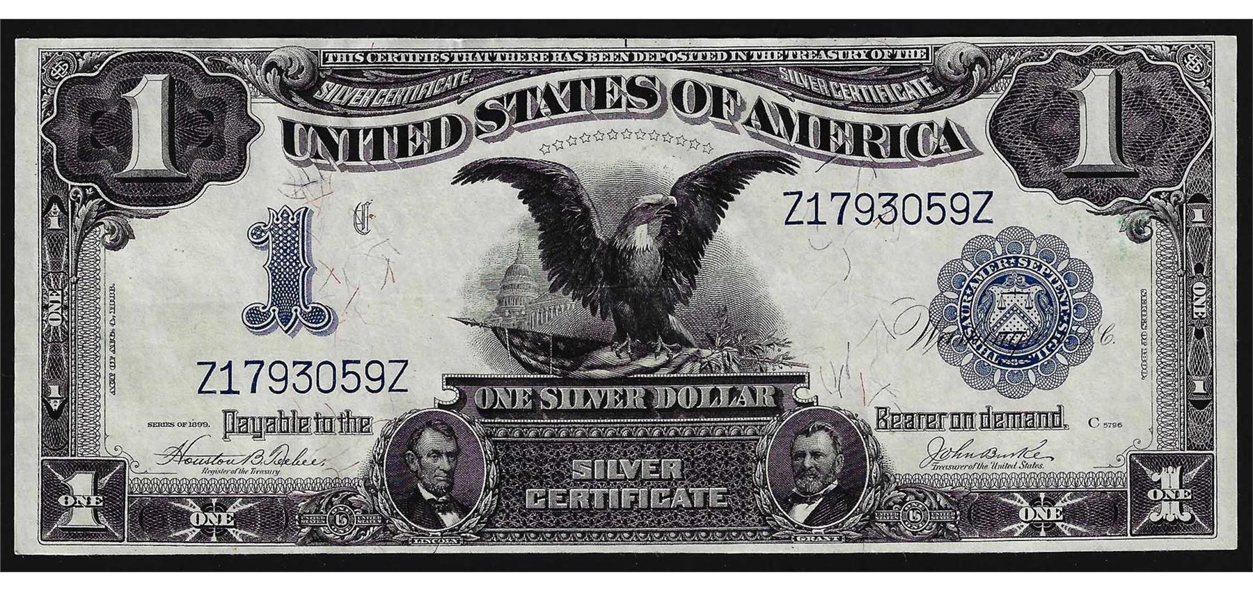 One 1899 $1 Black Eagle Silver Certificate Note.