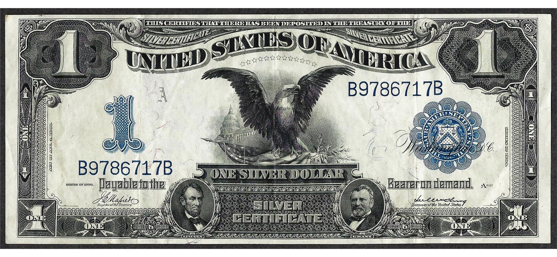 One 1899 $1 Black Eagle Silver Certificate Note.