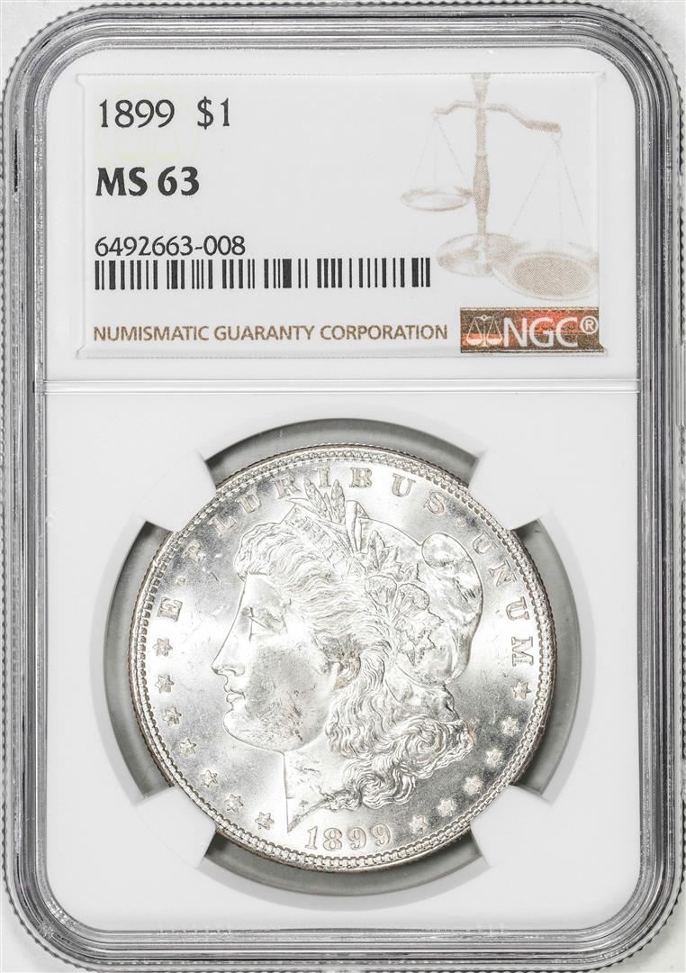 One 1899 $1 Morgan Silver Dollar Coin NGC MS63. NGC Certified.