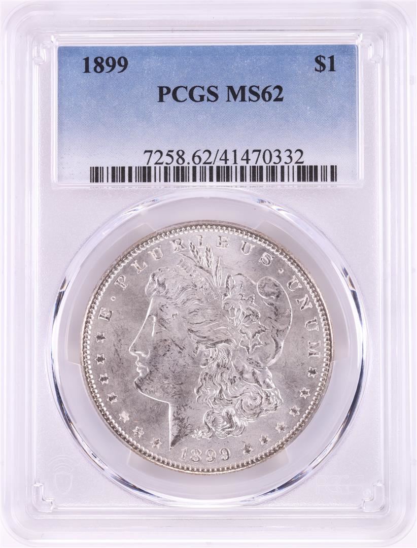 One 1899 $1 Morgan Silver Dollar Coin PCGS MS62.