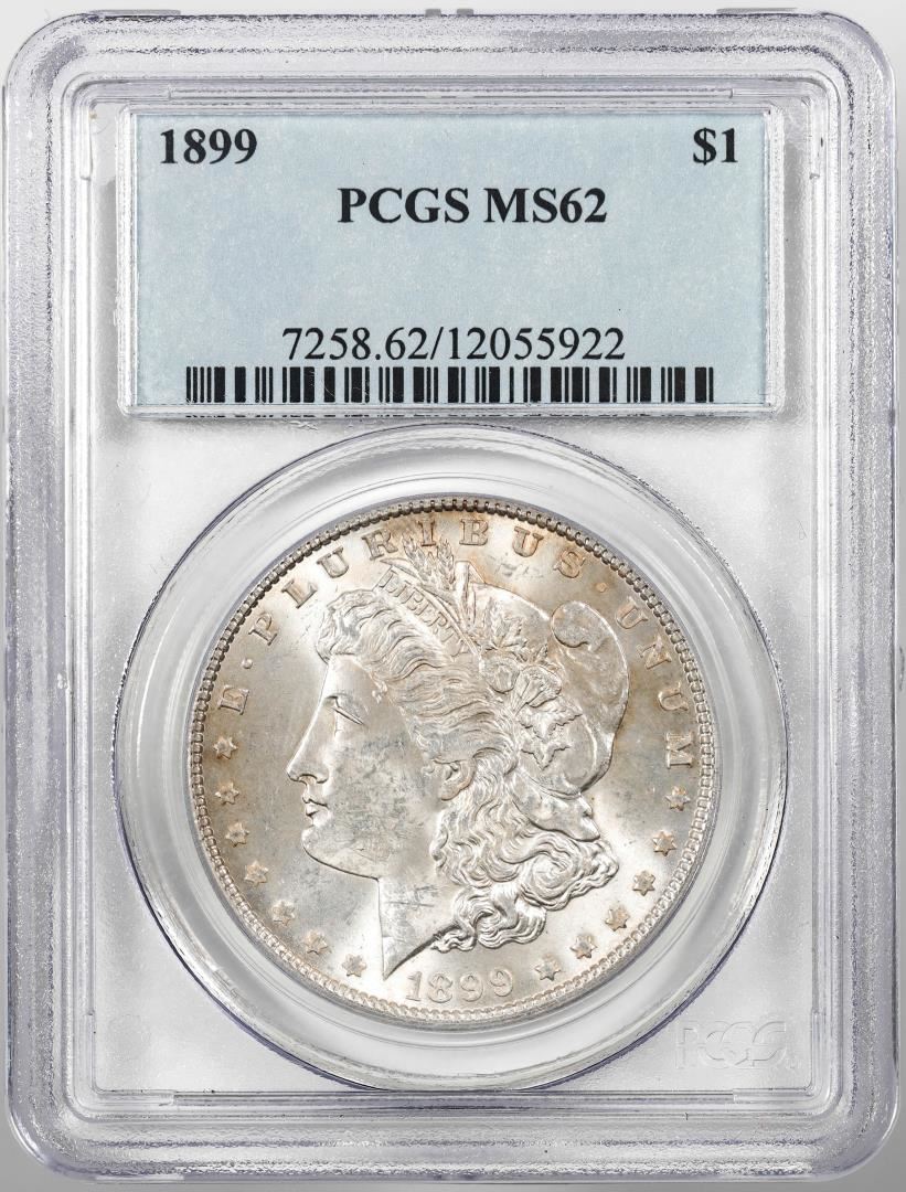 One 1899 $1 Morgan Silver Dollar Coin PCGS MS62. PCGS Graded.