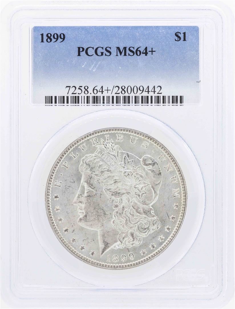 One 1899 $1 Morgan Silver Dollar Coin PCGS MS64+. PCGS Graded.