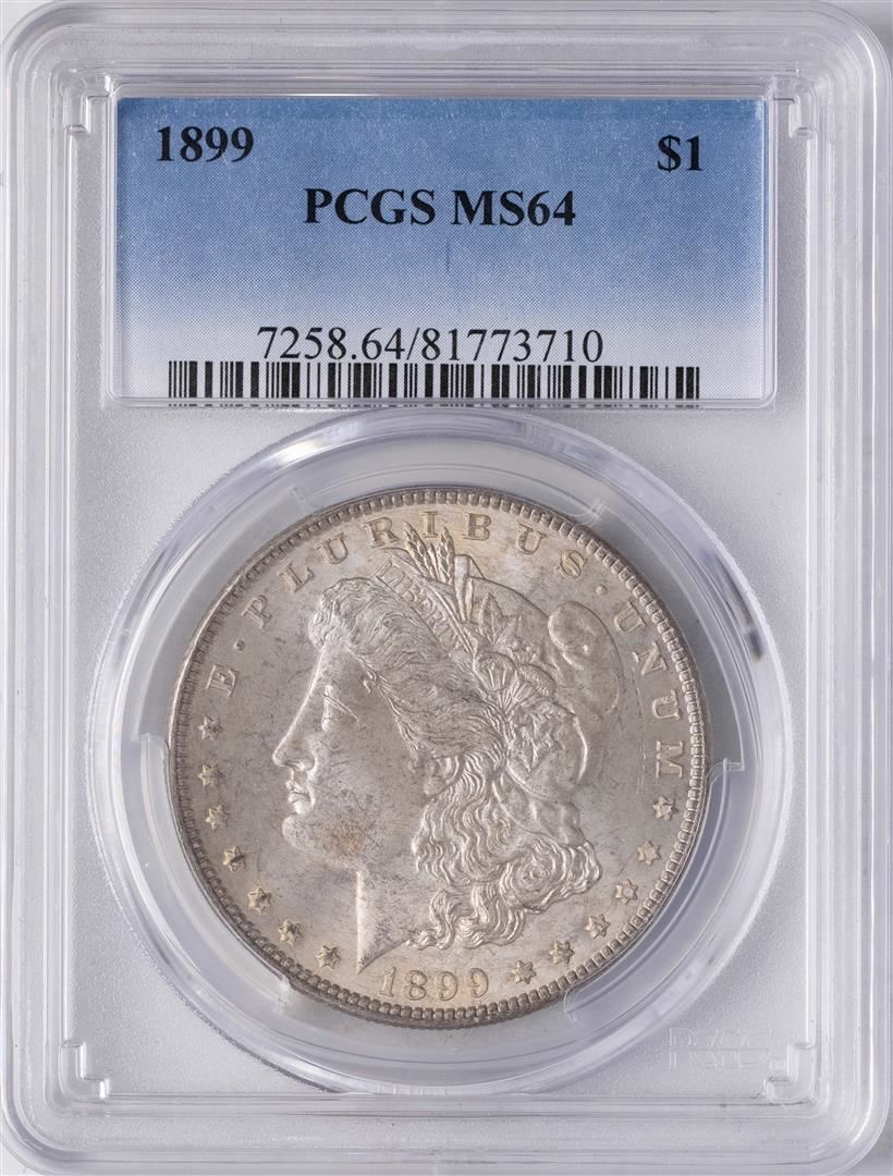 One 1899 $1 Morgan Silver Dollar Coin PCGS MS64. PCGS Graded.
