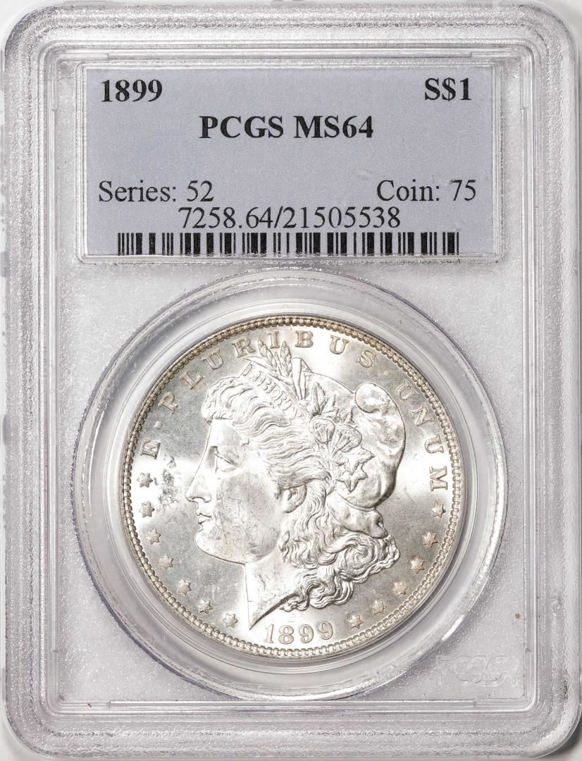One 1899 $1 Morgan Silver Dollar Coin PCGS MS64. PCGS Graded.