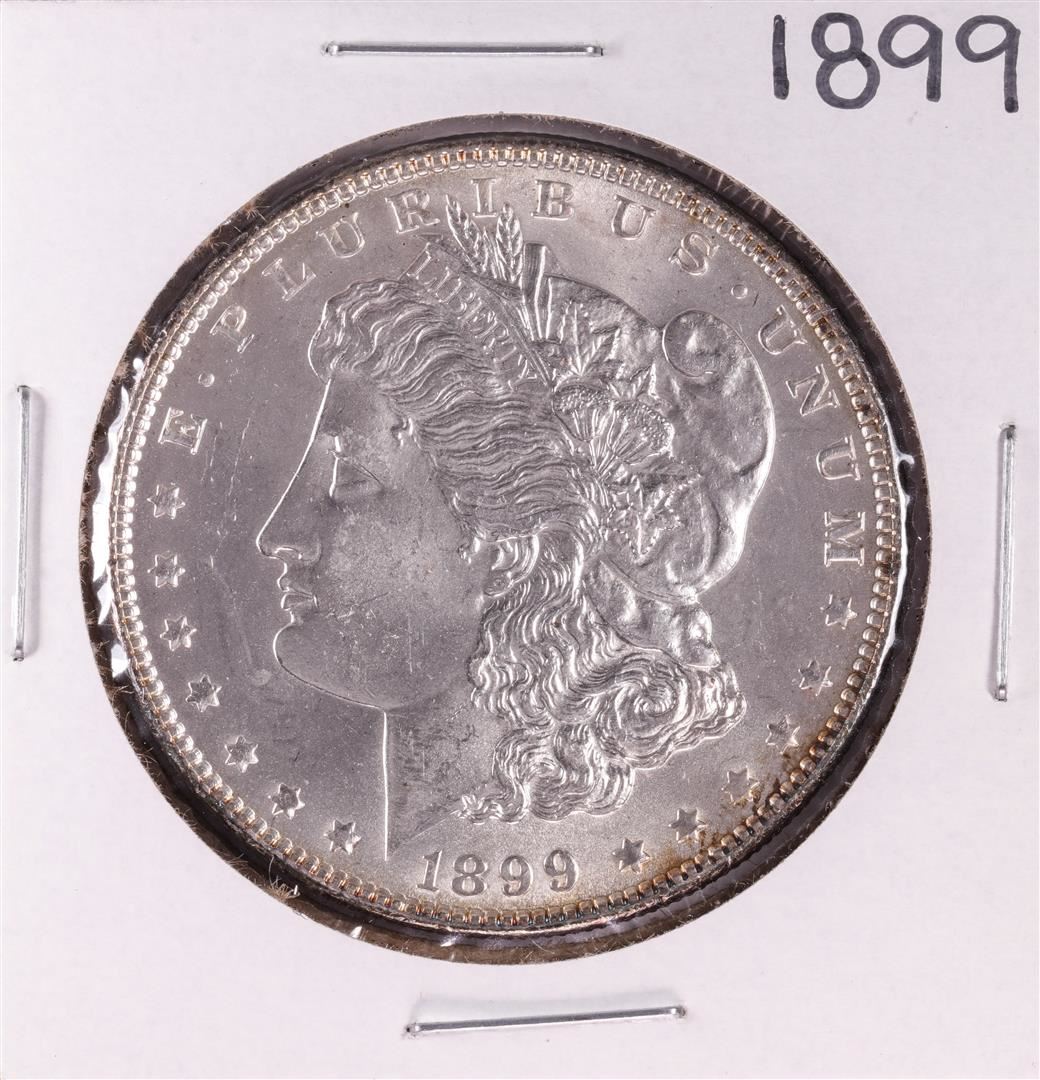 One 1899 $1 Morgan Silver Dollar Coin.