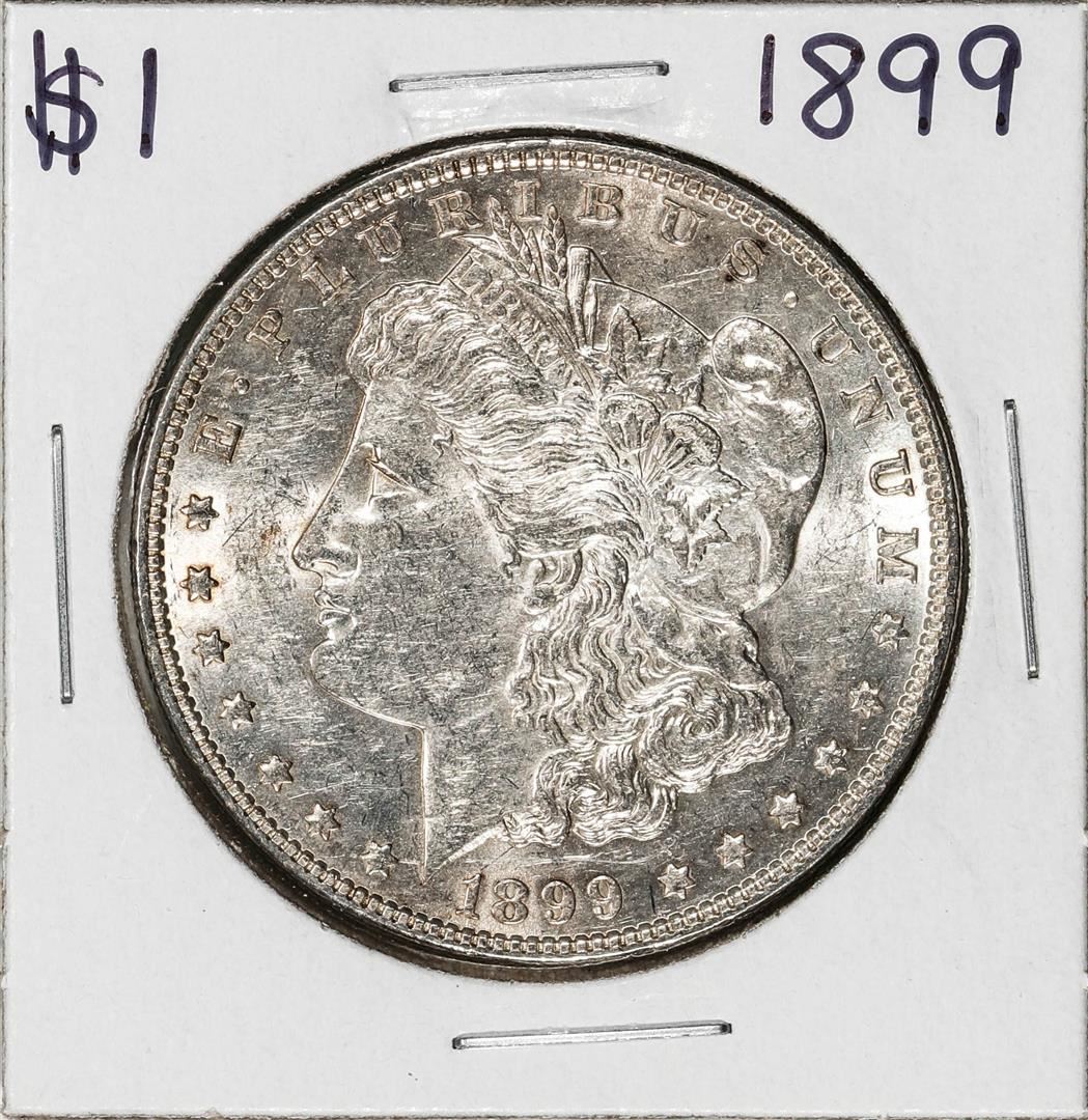 One 1899 $1 Morgan Silver Dollar Coin.