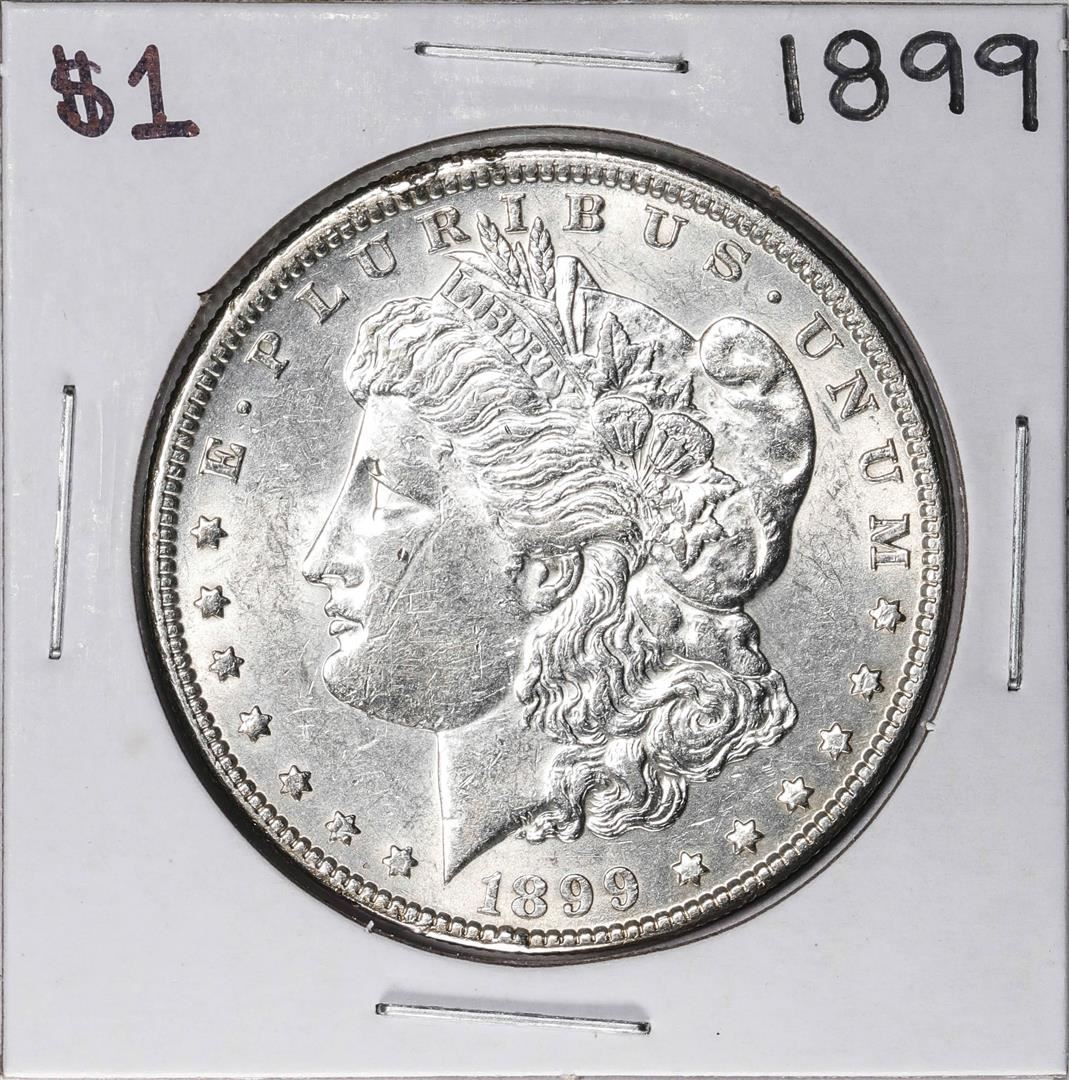 One 1899 $1 Morgan Silver Dollar Coin.