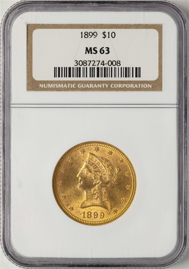 One 1899 $10 Liberty Head Eagle Gold Coin NGC MS63. NGC Certified.