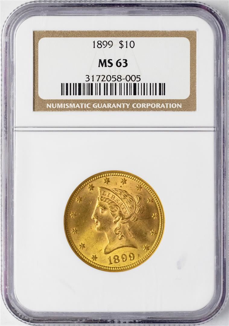 One 1899 $10 Liberty Head Eagle Gold Coin NGC MS63. NGC Certified.