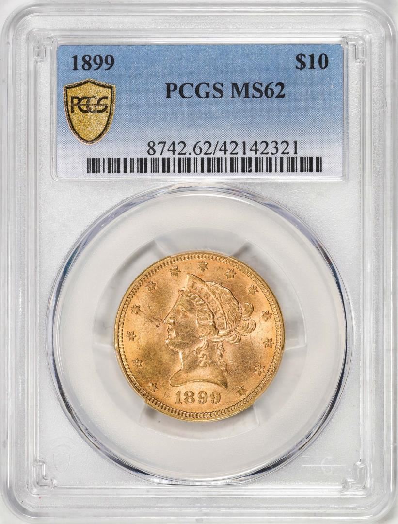 One 1899 $10 Liberty Head Eagle Gold Coin PCGS MS62. PCGS Graded.