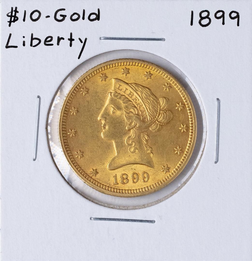 One 1899 $10 Liberty Head Eagle Gold Coin.