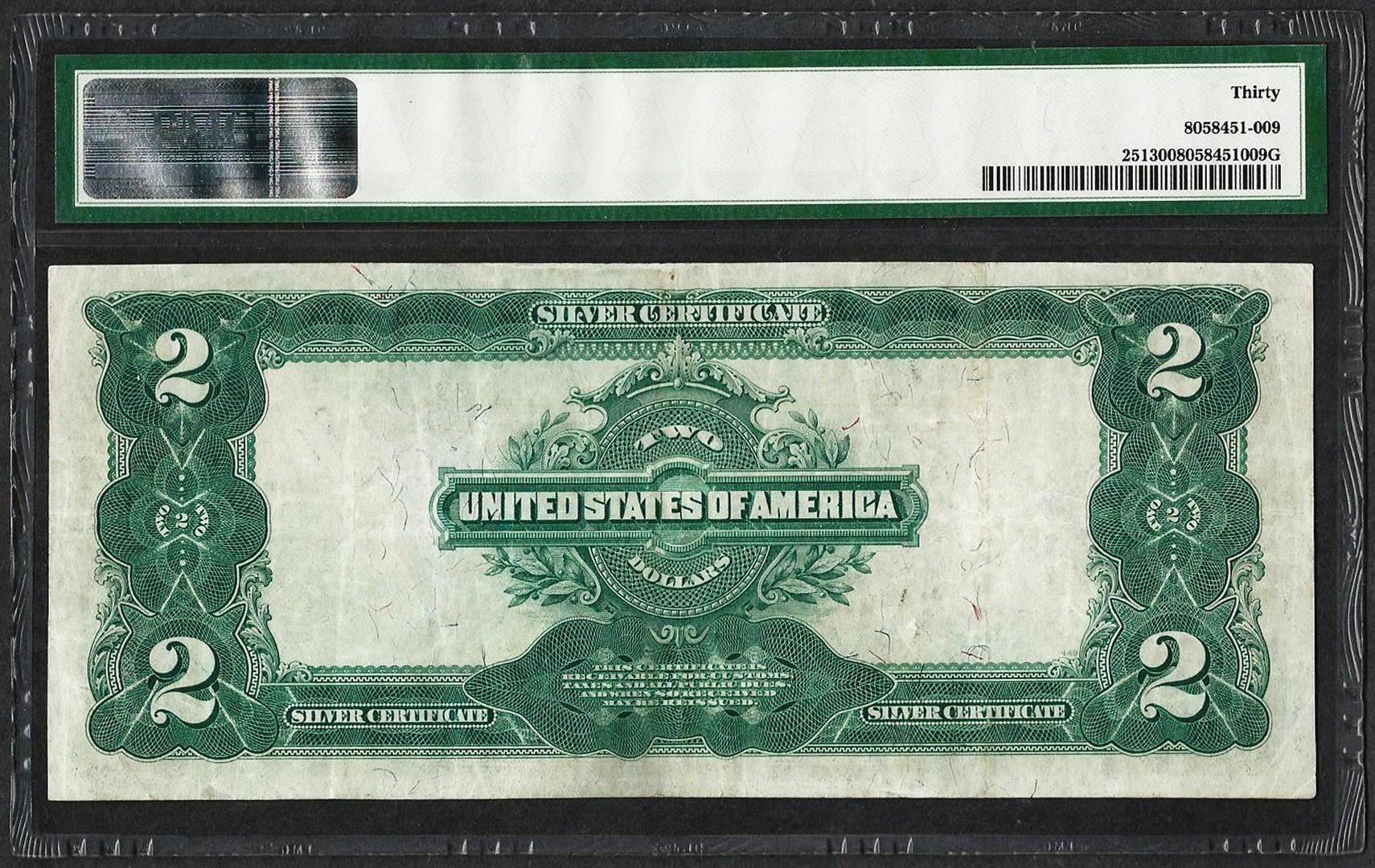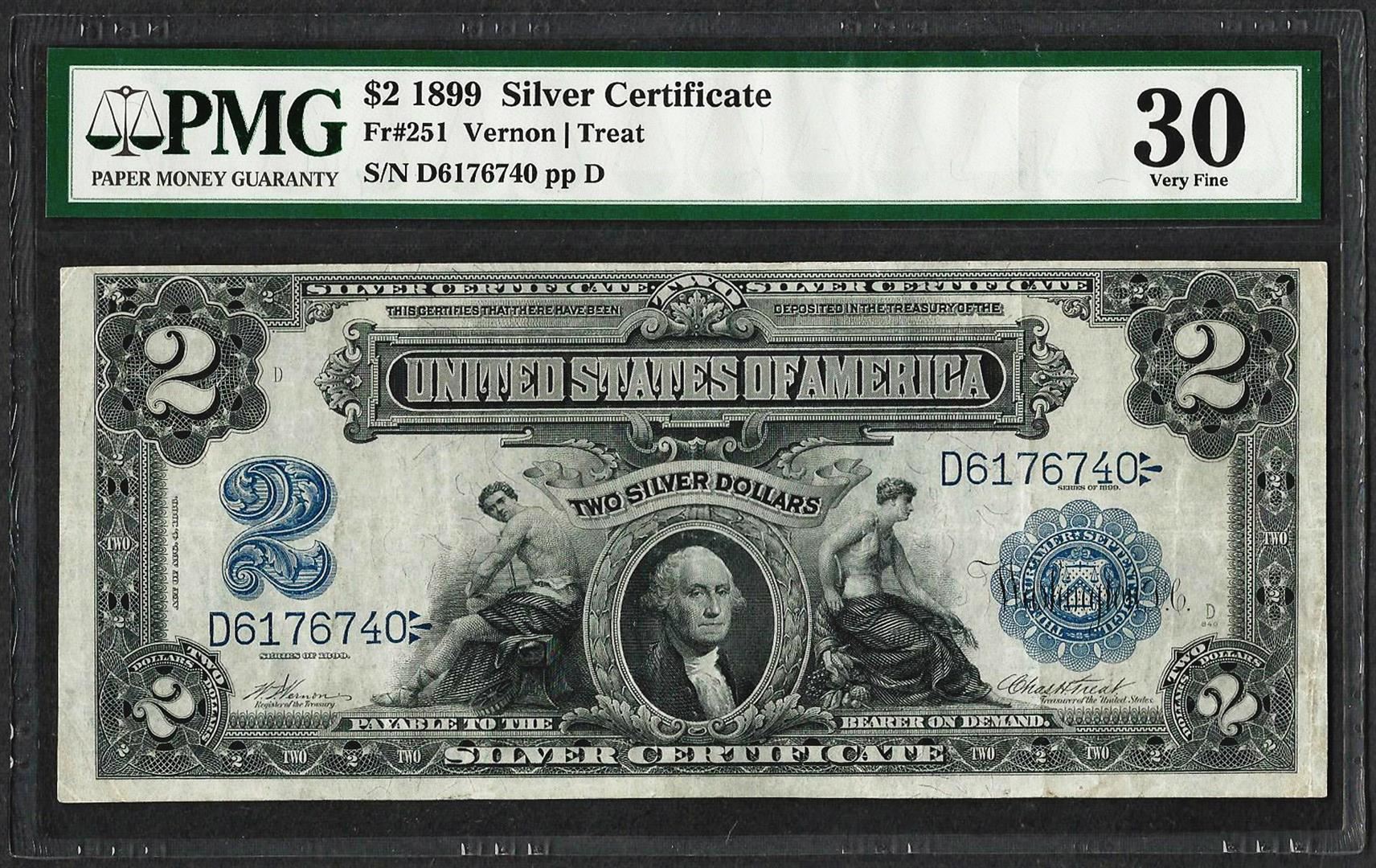 One 1899 $2 Mini-Porthole Silver Certificate Note Fr.251 PMG Very Fine 30. PMG Certified.