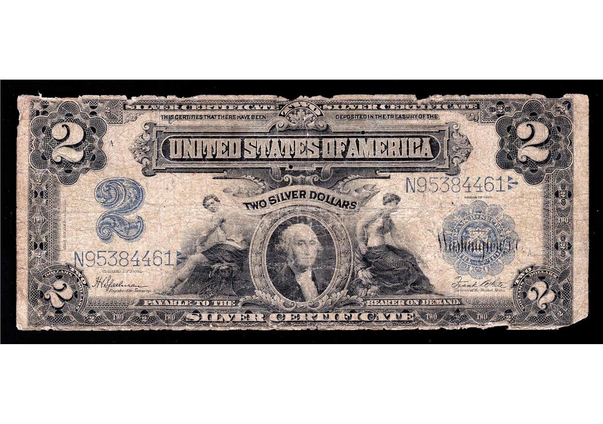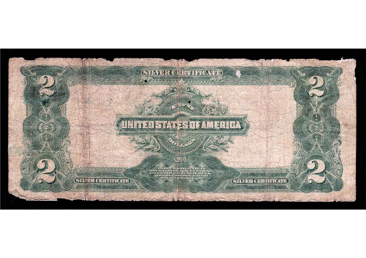 One 1899 $2 Mini Porthole Silver Certificate Note - Pinholes.
