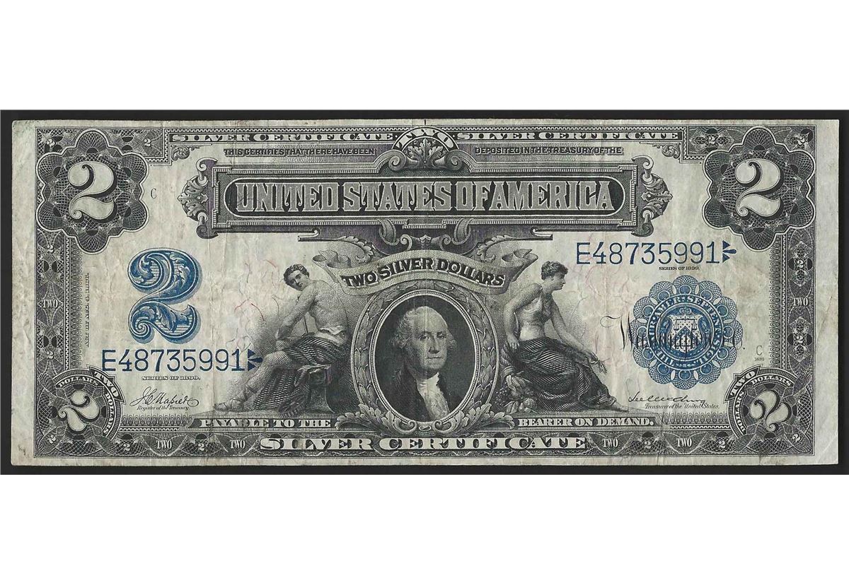 One 1899 $2 Mini Porthole Silver Certificate Note.
