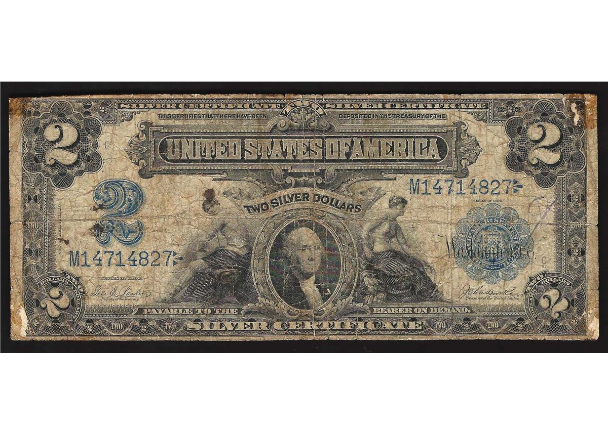 One 1899 $2 Mini Porthole Silver Certificate Note.