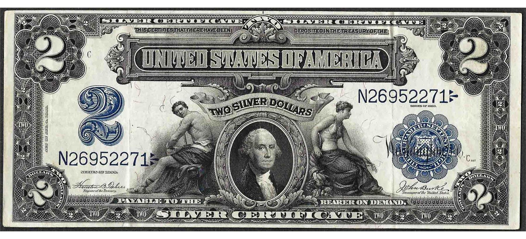 One 1899 $2 Mini-Porthole Silver Certificate Note.