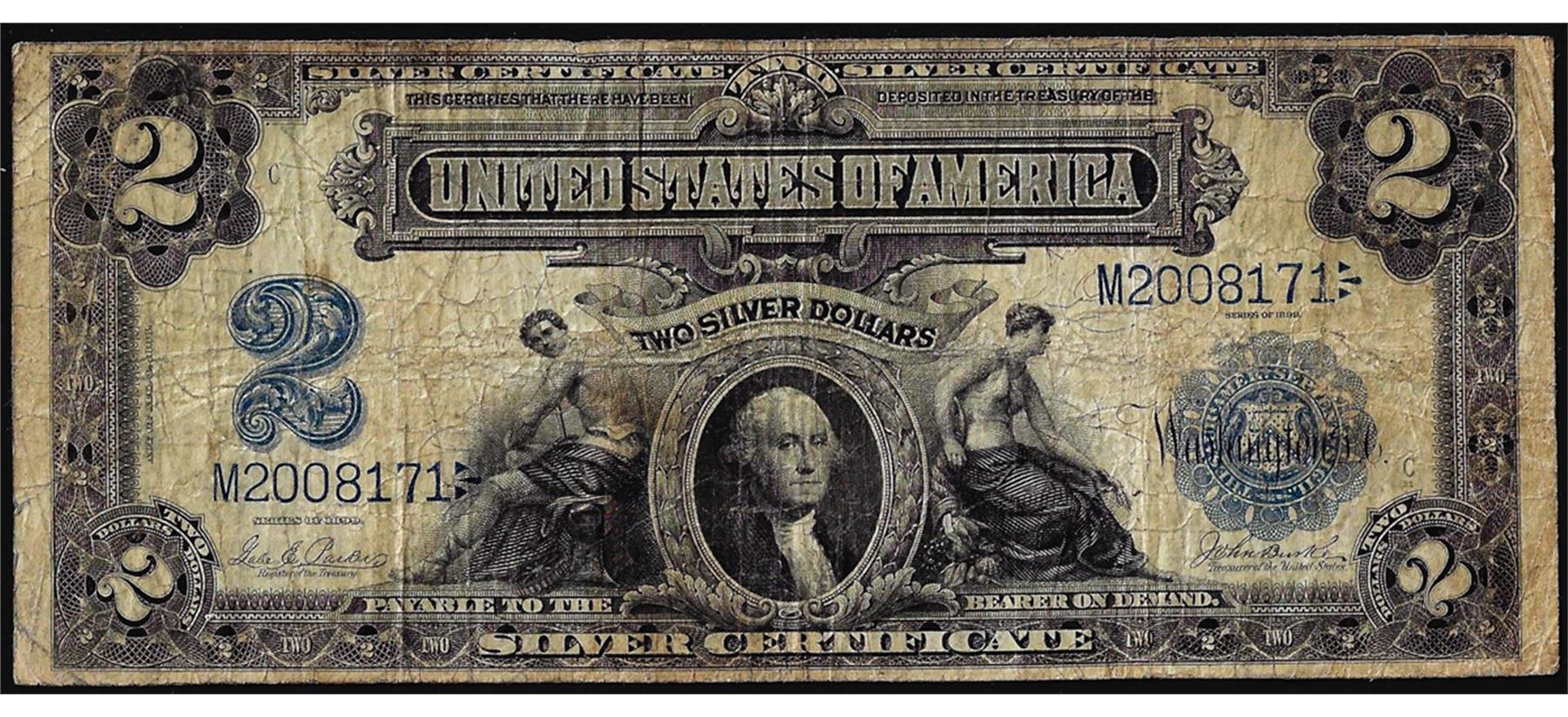 One 1899 $2 Mini-Porthole Silver Certificate Note.