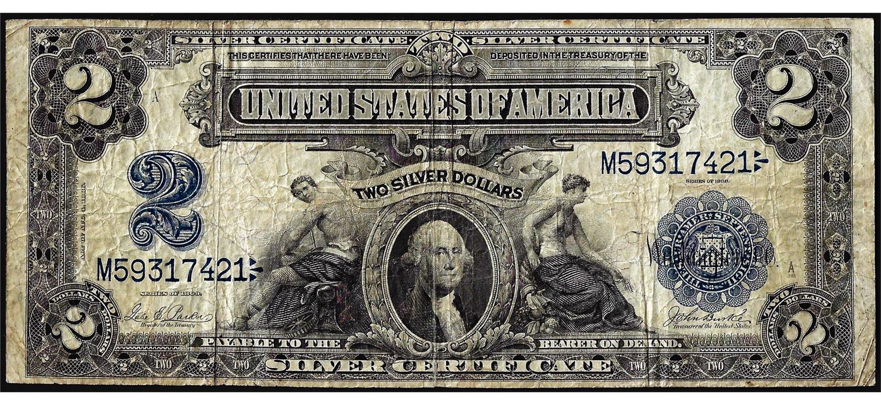 One 1899 $2 Mini-Porthole Silver Certificate Note.