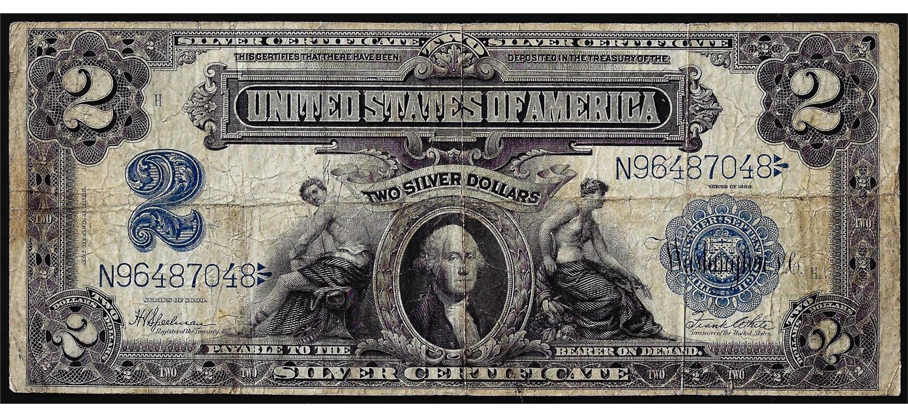 One 1899 $2 Mini-Porthole Silver Certificate Note.