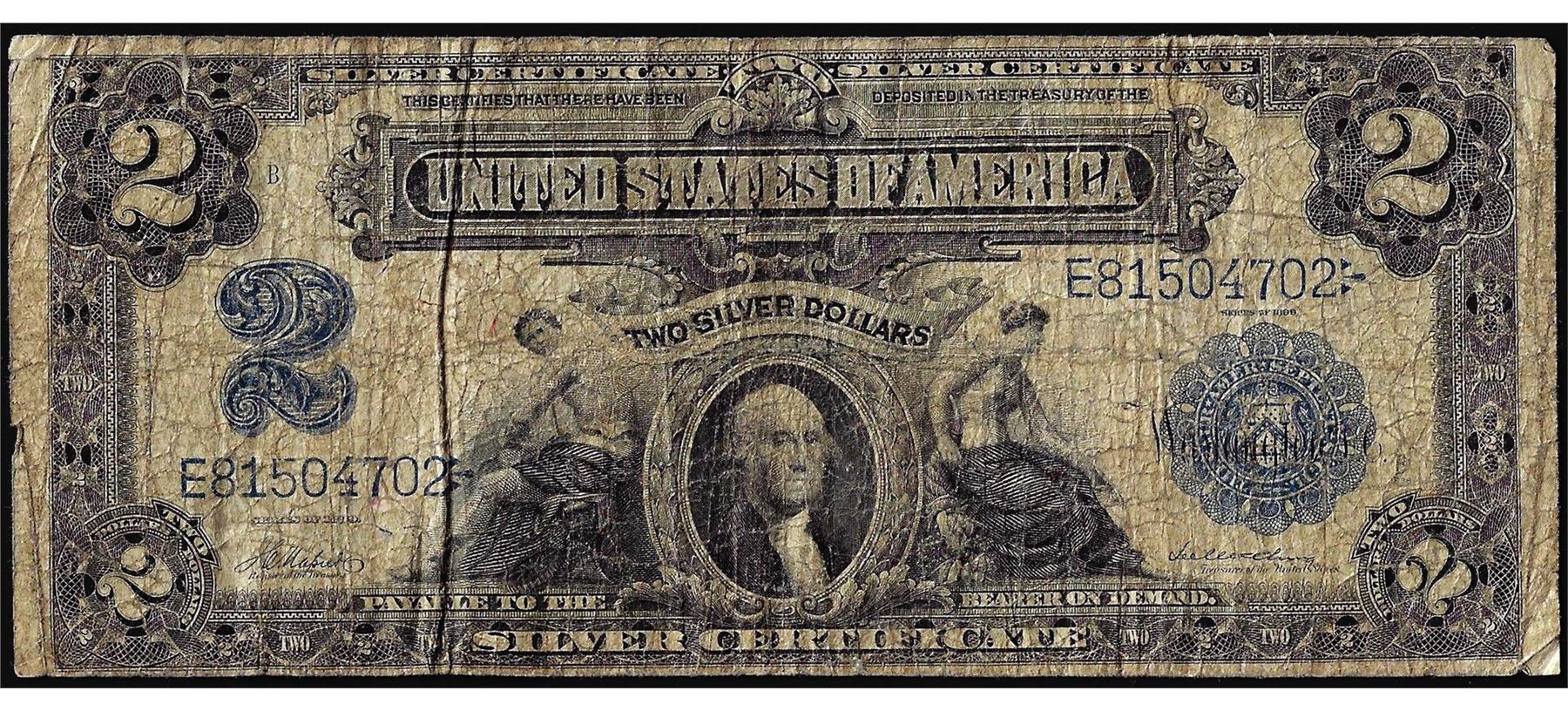 One 1899 $2 Mini-Porthole Silver Certificate Note.