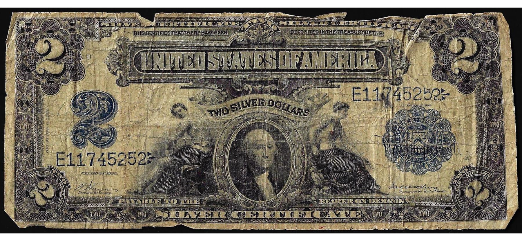 One 1899 $2 Mini-Porthole Silver Certificate Note.