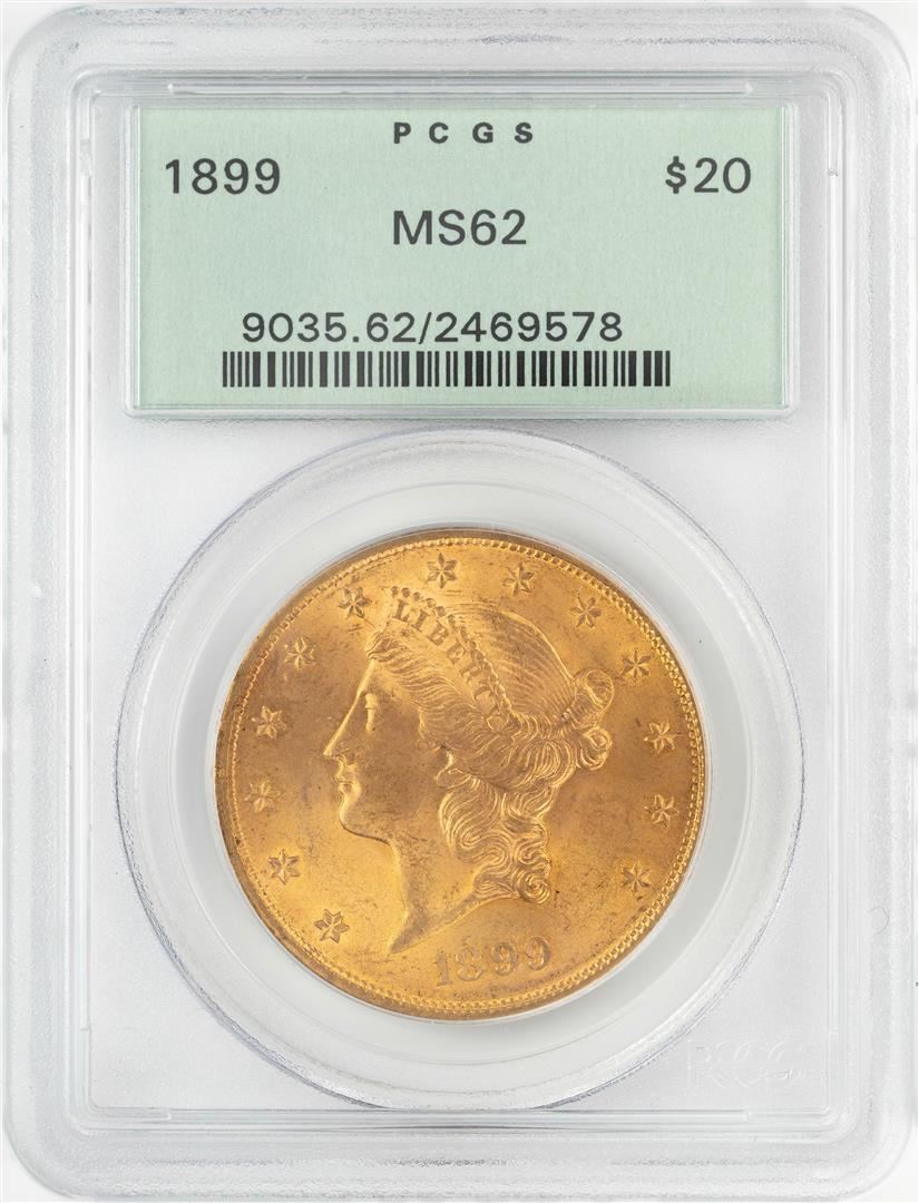 One 1899 $20 Liberty Head Double Eagle Gold Coin PCGS MS62 OGH. PCGS Graded.