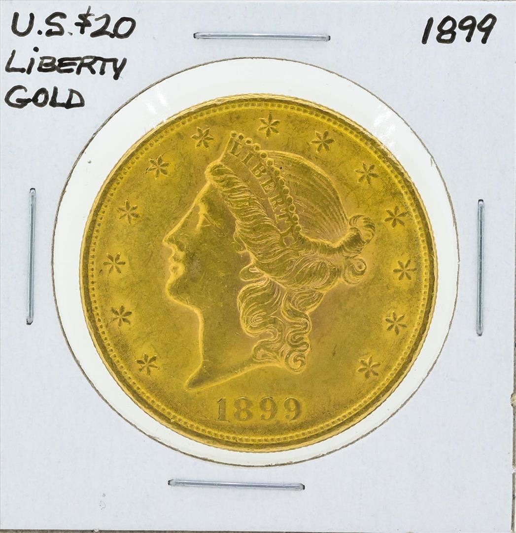 One 1899 $20 Liberty Head Double Eagle Gold Coin.